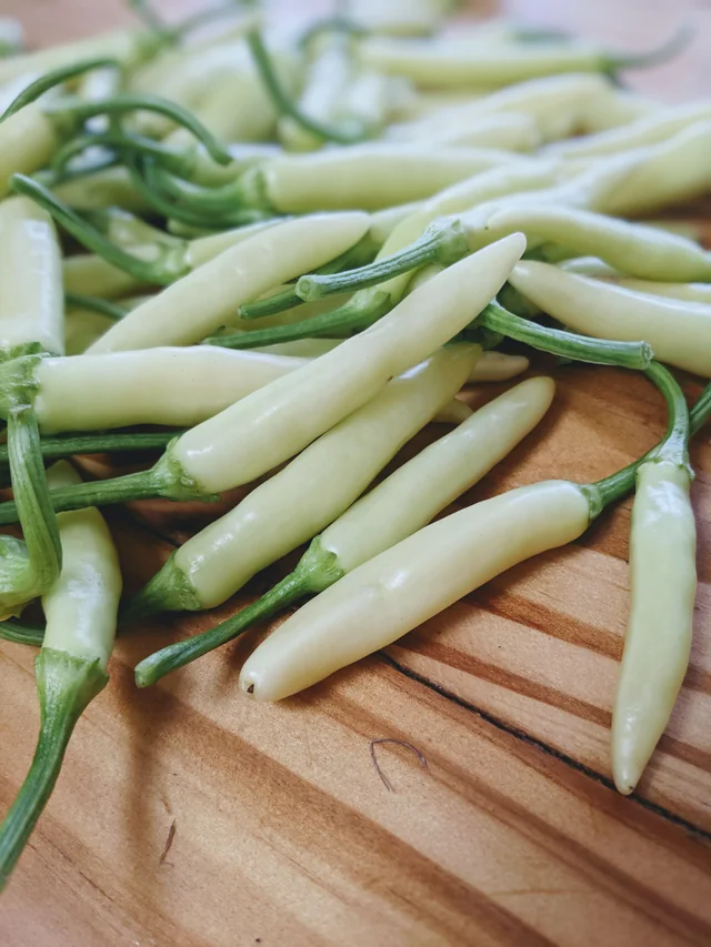 Turkish White Chilli is a variety of chili pepper known for its moderate heat and unique white color. It is commonly grown in Turkey and other Mediterranean regions, adding a distinct flavor to dishes. Unlike the bright red chilies, Turkish White Chilli has a subtler, slightly smoky taste that enhances a wide range of meals. It is often used in Turkish cuisine, including stews, kebabs, soups, and salads. Rich in vitamins A and C, as well as antioxidants, Turkish White Chilli provides immune support, aids digestion, and promotes healthy skin. It can be used fresh, dried, or ground into powder.